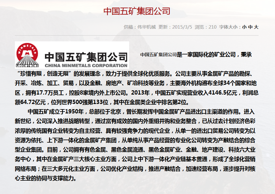 • 合作單位:中國(guó)五礦集團(tuán)公司